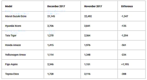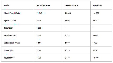 Coming to YoY sales, while the majority of the cars registered slower sales in December 2017 compared to the previous year, the Dzire stood out from the lot and registered a growth of about 44 per cent. The new Dzire was launched in mid-2017 and rose to popularity quickly. It was the best car of the lot in our comparison review as well.