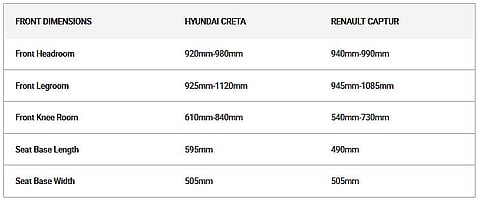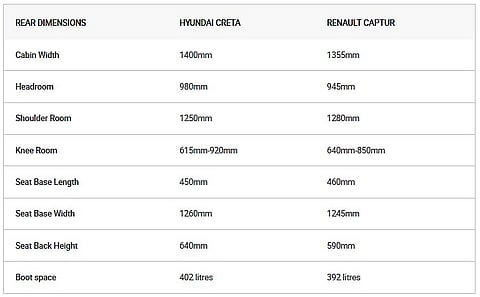 The Hyundai Creta has been the best selling compact SUV in the country for quite a while now. However, that doesn’t necessarily mean it is the best SUV in its class in terms of performance and interior space. While we have already done a performance comparison of the Hyundai SUV with one of its its arch rivals, the Captur, which you can read here, let’s see how the Creta fares against the French SUV in terms of interior space. But before that, let’s take a quick look at their exterior dimensions.