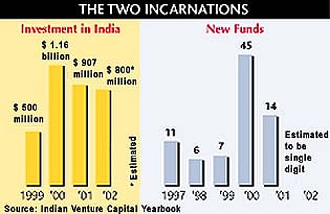All this does not mean that VCs are not looking at startups at all. The flavour of the month is biotech firms. Agrees Sarath Naru, MD, APIDC Venture Capital, which launched India's first biotech fund (Rs 150 crore): "As yet there are very few mature companies in the biotech space so you have to fund startups. Even with Rs 5 crore you can fund the startup requirements of a biotech enterprise." However, Natarajan feels that not much has happened in this sector in the past two years. Except for some deals like that of the Bangalore-based Strand Genomics, which raised $4.6 million from WestBridge Capital Partners, UTI Ventures and angel investors.