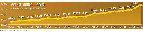 The current price levels have forced “innovations”—and ceaseless, in-your-face advertising—in the marketplace. This is happening both in financial instruments as well as gold retail. HDFC Bank’s Abheek Barua admits that where Indian investors are concerned, 45 per cent of financial savings are held in unproductive gold assets and that there is a growing push by banks and non-banking finance companies “to create all sorts of products (particularly in small towns and rural areas) like loans against gold as collateral to convert them into productive assets”. That explains why the loans-against-gold business is thriving.