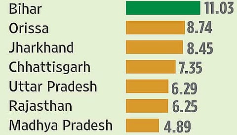 Though it ranks low in terms of GDP figures, development experts often cite Rajasthan as an example of a state that is utilising government-funded schemes like NREGS to change lives. Of course, this is in large part led by local activism. Similarly, though Madhya Pradesh has slipped, experts lay part of the blame on the vagaries of nature; in fact, the state ranks higher than Bihar in programme implementation. And though Uttar Pradesh shows higher GDP numbers, growth in the state has been asymmetrical—be it in education, agriculture or healthcare.