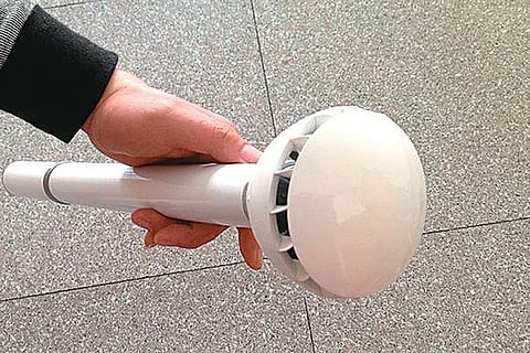 A new umbrella uses air flow instead of nylon to keep users dry. Using a battery and motor, the fan blades rotate at speed, pulling in air and pushing it out at high pressure, blowing the raindrops away in an arc around a user’s head. The pitfalls: it’s bulky, the battery lasts only half an hour, and costs $100-$150.