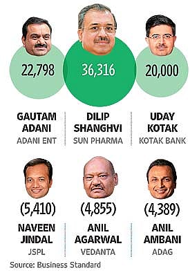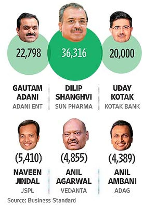 Top three gainers and losers in wealth, 2014-15 (Figures in Rs crore)
