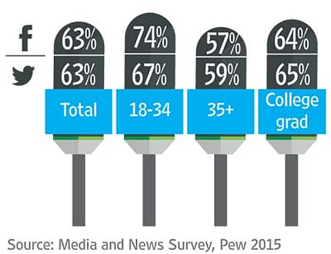 Percentage of services’ users who get news