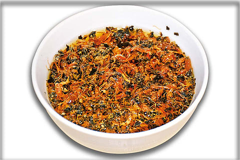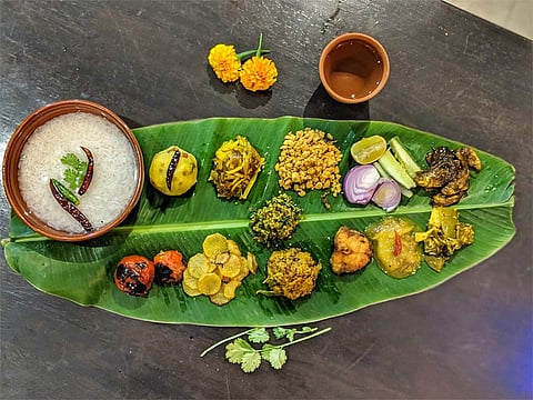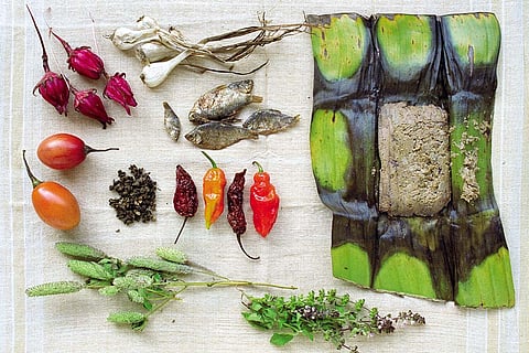 Somewhere along the switchbacks seesawing to Māwsynrām, the menu at Samantha and Oomnen’s ‘5 Star Resturan’ is as much an oddball as the couple—it’s quite a story about how a tiny Khasi woman domesticated a wandering hulk from Kerala. That’s another time; this is a food story. Their food is fused with reciprocal love: a crisp dosa paired with tungrymbai and tungtap, Khasi fermented soy beans and a fish mash of punchy flavour and texture. The sambar and coconut chutney are seasonal/optional, leaning on supplies reaching this wet, wet world in Meghalaya. Pozhudhu sadam, the southern curd rice, accompanies a bowl of dohneiiong, pork chunks in a viscous curry of black sesame seeds. When the winter draught peeks through cracks in the shack’s wainscoting, they serve meals in insulated poly-casseroles. Fermented food tastes best in room temperature, they say. Not hot, not cold.