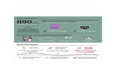 The report also states that jewellery demand is impacted more by short-term factors like inflation and rainfall, while the consumption of coins and bars depends more on long-term factors like per capita Gross National Income, levels of gold prices in Indian rupee terms and government levies.