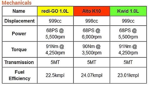 Following the proven formula of the Renault Kwid, Datsun has finally introduced the expected 1.0-litre version of the Redi GO. It borrows the 1.0-litre petrol motor from the Kwid 1.0 and will be launched on July 26. Like the Renault counterpart, the redi GO 1.0 will only be available in its top two trims. Let us see how it fairs against its own sibling, the Renault Kwid 1.0, and the segment bestseller, the Maruti Suzuki Alto k10.