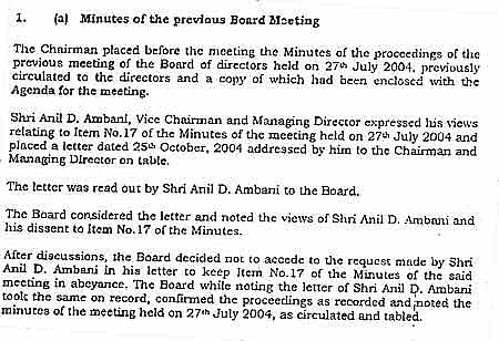 This indicates the rubber stamp nature of the six independent directors on RIL board (of the 12 members); the board didn’t feel that it was unusual for the chairman to get all powers to make final decisions; Anil’s opposition to proposed changes in the powers of the chairman were not taken into account.