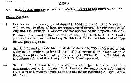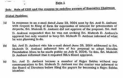 It was under this innocuous resolution that Mukesh tried to increase his powers as the chairman and sought to force brother Anil to take clearance for all his investment/financial decisions from him; the clause ensured that the chairman was the last word on all important matters in RIL.