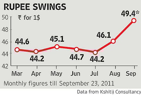 Given the volatility in exchange rates, it’s unclear which way the rupee will move. K. Gurumurthy, currency analyst with Calcutta-based Kshitij Consultancy, expects the rupee to reach levels of Rs 50.5 by the end of the year. “In the immediate range, for the next couple of weeks, we will be looking at Rs 48 on the downside and Rs 49.5 on the upside,” says Gurumurthy. In another estimate, FIEO president Ramu S. Deora feels the rupee may go up to Rs 45-46 levels by next month.