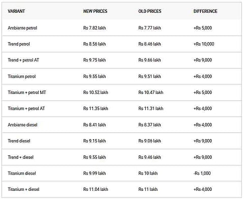 Here are the updated prices of the EcoSport (ex-showroom Delhi)