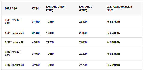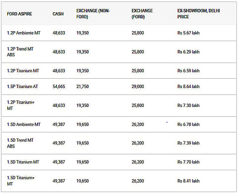 Ford India is offering cash discounts and attractive exchange bonus schemes on the Ford Figo hatchback and the Aspire sub-4m sedan. The automatic variants of both the cars get the maximum benefit with a cash discount of around Rs 42,000 for the Figo AT and over Rs 54,000 on the Aspire AT. Apart from a cash discount, Ford is offering an exchange bonus on both the cars as well. The exchange bonus for a Ford car is more than what you get on cars from other brands.