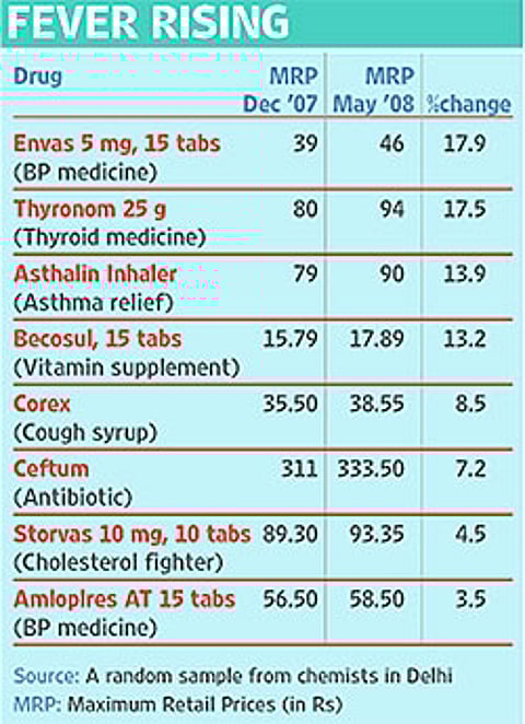 That's easier said than done, of course. For a regime that sailed to power on the equity plank, affordability of medicines is key, particularly when 80 per cent of medical expenses are not covered by any kind of insurance. Over the last six months, price of drugs for diabetes, cholesterol, thyroid, asthma, vitamin supplements and so on have risen (see box). Tapan Ray, director general, Organisation of Pharmaceutical Producers of India (oppi), however, contests this: "Of the over 54,000 drug packs NPPA has examined, in only about 0.5 per cent of cases has it detected overpricing."