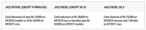 Planning to purchase a brand new Honda car of late? Well, now might be the best time to get one as Honda India is rolling out cash discounts ranging from Rs 15,000 to Rs 1.50 lakh with free insurance and corporate discounts on its complete portfolio with the exception of the newly-launched Amaze and the Accord. The limited stock includes unsold cars from 2017 and particular variants of the MY2018 models. The offer is valid only till the 30th June, 2018. The model-wise breakup of discounts and benefits are as follows:
