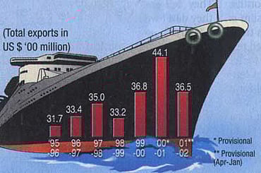 Commodity-wise export growth (%) | 2000-01 | 2001-02 |