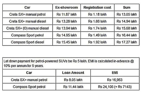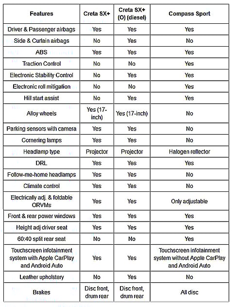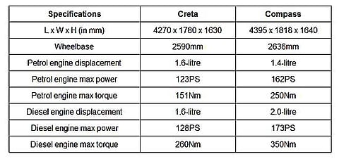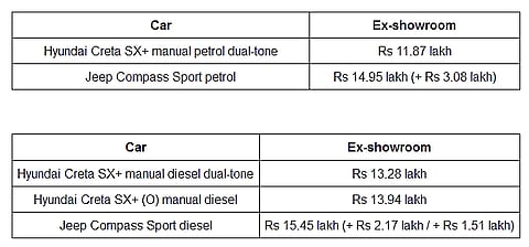The Jeep Compass and the Hyundai Creta were never supposed to lock horns. In fact, the Compass is a direct rival to the Hyundai Tucson, which sits one rung above the Creta. But Jeep's aggressive pricing strategy has narrowed the gap between the entry-level Compass and top-end Creta to only Rs 1.5 to Rs 3 lakh. That’s the reason why we’re comparing both these SUVs to understand whether it would make any sense for a prospective Creta buyer to stretch his budget and go for the Jeep.