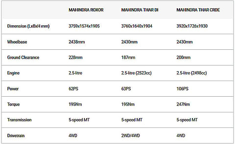 Here’s how the Roxor fares against the Thar on paper: