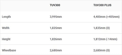 The Scorpio and the NuvoSport are also underpinned by the same. Here’s how the Mahindra TUV300 and the TUV300 Plus stack up against each other dimensionally: