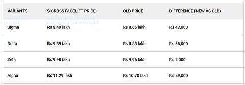 Maruti Suzuki has launched the S-Cross facelift in India with prices starting from Rs 8.49 lakh. The price of the base variant has gone up by Rs 43,000, and it’s primarily because of the addition of mild-hybrid (SHVS) tech on the 1.3-litre diesel engine. The engine specs remain the same as before but claimed mileage (fuel efficiency being the correct term) has gone up from 23.65kmpl to 25.1kmpl, a 7 per cent increase. The increase in fuel efficiency is despite the 35kg increase in weight.