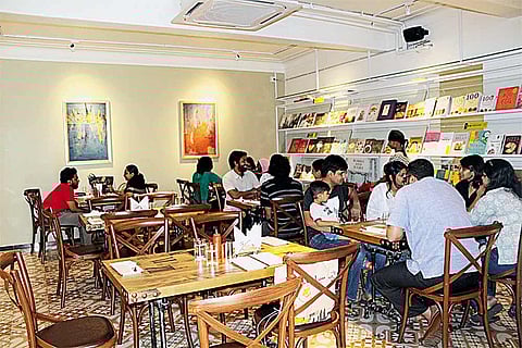 His latest offering, Writer’s Cafe, is an outcome of this ability to rethink and remodel on the spur, almost as a reaction. The cafe, close to the iconic Sathyam cinemas, also houses a branch of Chennai’s oldest bookstore, Higginbothams. The walls are lined with books, for browsing and buying, while the tables overflow with youngsters animatedly talking or doing projects on their laptops. “They are allowed to linger here forever. They enjoy the fresh and friendly ambience. We sell our coffee, pizzas and pastries, while Higginbothams notches up a monthly sale of books and stationery worth Rs 5 lakh,” Mahadevan says, pointing at the successful combo of coffee and books.