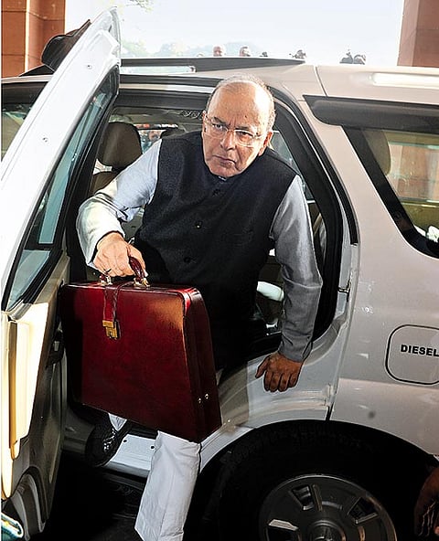 Finance minister Arun Jaitley arrives at Parliament to present Budget 2018