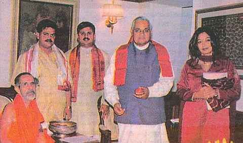 This is when Niira made an important friend—and also got herself an enemy. The friend was Ananth Kumar of the BJP, who was the NDA’s civil aviation minister in 1998-99. Niira grew extremely close to Ananth Kumar during this period, and used the access to the cabinet minister to enhance her clout. It was Ananth Kumar who introduced her to Pejawar Swami (read Swami Visvesh Teertha), a godman from Karnataka and also Uma Bharati’s guru. In fact, the Kannada weekly tabloid Lankesh Patrike, printed from Bangalore, had even published a picture of Radia with Pejawar Swami and A.B. Vajpayee. Though she later fell out with the swami, this connection got her an important ally, via Vajpayee, in his foster son-in-law Ranjan Bhattacharya (who figures prominently in the 2G scam tapes).
