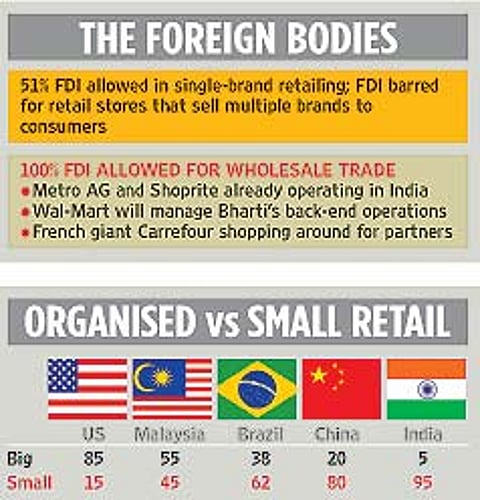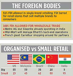 Clearly, new retail formats will emerge. Says Kishore Biyani, founder and chairman, Future Group, one of India's largest retailers: "I believe we have created a new breed of monthly shoppers that does not compete with the daily shopping needs local kirana stores cater to." Brand consultant Harish Bijoor talks about a franchisee model, where large players tie up with small stores. While the big players manage the back-end and procurement, the small players interact with the consumer. Some large players like Bharti Retail are considering such formats. Says Rajan Bharti Mittal, MD, Bharti Enterprises, "The intermediaries and middlemen of today could become entrepreneurs of a different kind. There would be enough space for processing food and groceries to make it ready for the consumer." It obviously helps that the small store is sitting on expensive real estate—and is closer to the consumer.