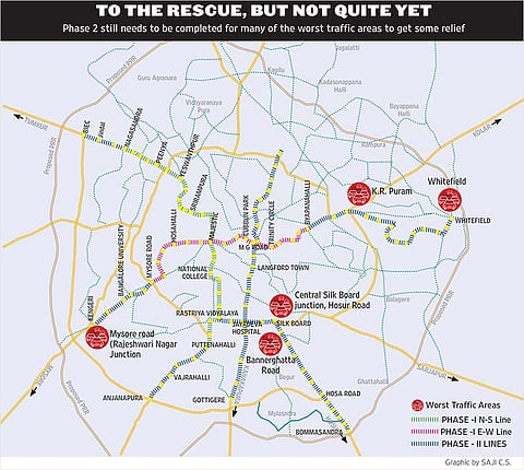 Still, the system currently traverses only 42 km, and doesn’t go as far as the junctions mentioned earlier. Those are being tackled in Phase 2, the Rs 26,405-crore undertaking that will hopefully make it easier for Bangaloreans to get around.
