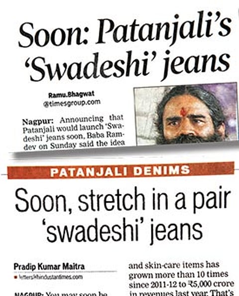 What then makes the claim of Patanjali jeans, as exclusively swadeshi viable? “It is just Baba Ramdev’s style of marketing,” says Rajesh Dudeja, founder of the Denim Club of India, and Handloom Denim, an eco-friendly, handcrafted, denim initiative. “It is Patanjali’s go-to marketing strategy. Their ‘country-rooted’ products idea has worked for them always, so why would they go another way with this?” reasons Jasmeher Singh, CEO and founder of the fashion brand Dank.