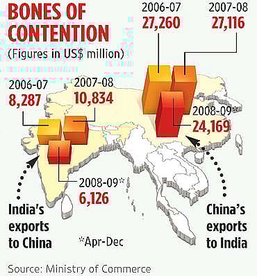 Experts on India's trade relations with China advise caution mixed with common sense. Indian exports to China have been mainly 'primary commodities' such as ores, minerals, iron and steel. However, Chinese exports to India are slowly, but surely, being dominated by manufactured goods. The balance of trade remains firmly in China's favour. "We haven't accorded China market economy status," says K.T. Chacko, director of the Indian Institute of Foreign Trade, "precisely because it does not lend itself to transparent market access. But you can call China a 'threat' only when it's coming from companies that are breaking well-established practices."