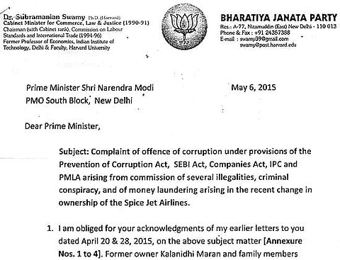 The BJP member wrote three letters to Prime Minister Narendra Modi questioning the SpiceJet sale to Ajay Singh. The letters, sent on April 20, 28, and May 6, were duly acknowledged by the Prime Minister’s Office.
