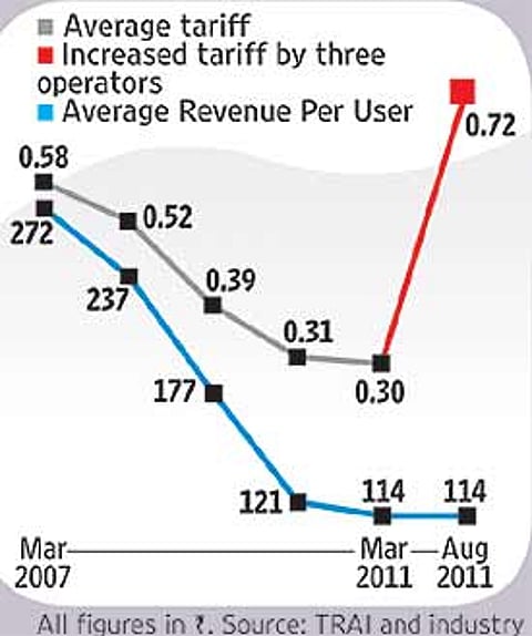 What do the companies have to say? It is obvious they are under tremendous pressure to offer services with tariffs at levels unheard of anywhere in the world—starting around 0.5-1 paise per second. With revenues constantly falling, this was telling on the companies’ bottomlines. Investors and bankers have been asking tough questions. Says an official from Vodafone, on the condition of anonymity, “This tariff movement comes after almost two years, as there is margin pressure on all operators. Everybody has realised that you cannot run a sustainable business on this model.”