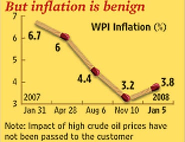 Despite many odds, there continues to be optimism that the Indian economy—which is looking forward to around 8.5 per cent growth in 2007-08—will not be significantly impacted by the bad news from the US. But the foreign funds outflow is taking its toll. Says N.R. Bhanumurthy of the Institute of Economic Growth: "In the past, whenever the rates were cut in the US, funds would generally flow to emerging markets like India. But this time around, we have not seen any such trend. Instead, we are seeing foreign fund outflow. This gives room for RBI not to reduce interest rates. It can now focus on inflation control."