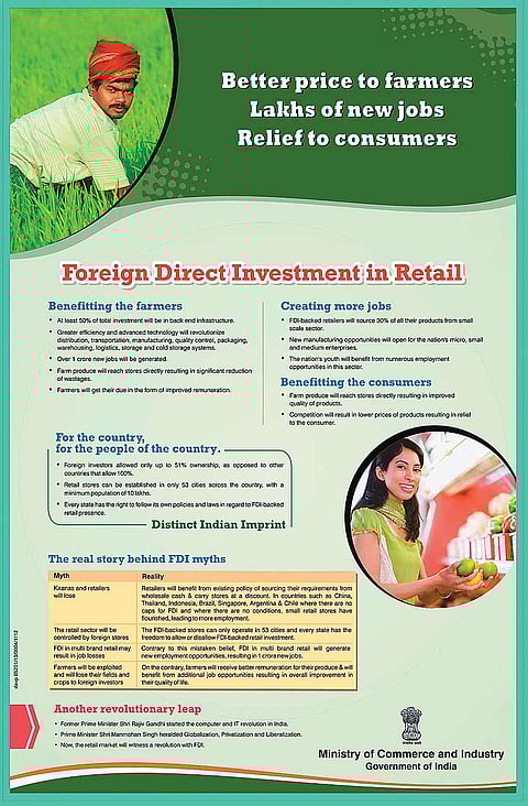 Apart from the consumer—the large chains will definitely bring down prices of products—the farmer is seen to be the other beneficiary. However, apart from a few voices, he has been strangely subdued. As the policy spells out, backend infrastructure or supply chain management is expected to be a crucial focus in future. Still at a nascent stage, not many farmers have yet reaped any dividends from it, one reason for support for the opponents of FDI in multi-brand retail. “Unless government eases supply bottlenecks, opening up retail sector to FDI is not going to help,” says Dr Mathew Joseph, who headed the first ICRIER study on the impact of organised retail on kirana shops.