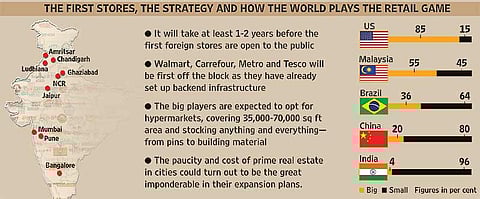 Having had time to establish a pan-India presence—including garnering prime real estate within city limits—domestic retailers are not unduly worried about the expected competition. “The high Indian real estate prices are the joker in the pack. For instance, Shopper’s Stop picked up space in Delhi’s Ansal Plaza at Rs 35/sq ft. Where do you get prices like that today?” asks Abhijit Bhaumik, director at boutique consultancy Opus Advisory. Bhaumik anticipates that there will be a logistical challenge initially for foreign players seeking entry into the market. But even if they complain, come in they will into the billion-plus Indian market, warts and all. For consumers and producers to really benefit, though, further reforms, carefully thought out, will have to be pushed through.