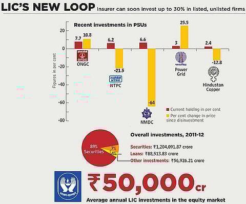 LIC has pumped in approximately Rs 13,000 crore into disinvestments since 2012. This has recently included the disinvestments of ONGC, NTPC, NMDC—these cases alone have caused mark-to-market losses of over Rs 5,000 crore. Then there’s the Rs 8,000 crore invested in the preferential allotments of Bank of Baroda, Punjab National Bank and so on.