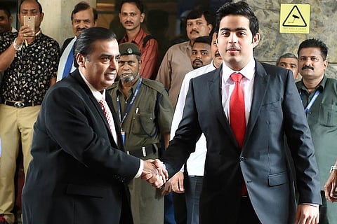 He’s still young, isn’t he? But he’s learning the ropes—the tropes of top biz behaviour. The serious business of managing the uncountable millions can come later. An indulgent Mukesh Ambani greets son Akash at Reliance’s AGM in Mumbai recently.