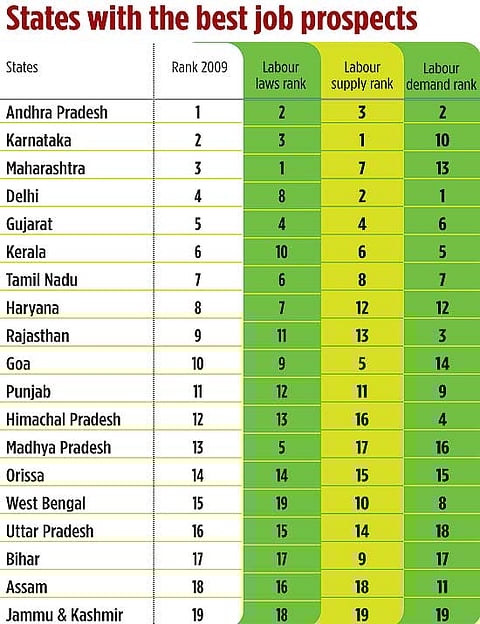A deeper look at the geographic mismatch (the previous ranking was in 2006) shows that in terms of the entire labour ecosystem—the demand and supply of jobs, and the implementation of labour laws—Andhra Pradesh, Karnataka and Maharashtra are at the top. However, many states losing the opportunity to differentiate themselves are at the bottom of the ranking, and these have higher chances of housing more of the poor, witnessing forced migration and social problems such as Naxalism. “Demographics is not destiny and states can bend the curve with radical programmes to improve their employment, employability and education ecosystems,” avers Sabharwal.