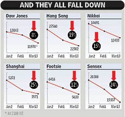 Clearly, the downward sentiment has overtaken everything else. Says Shankar Sharma of First Global Securities: "The current situation has nothing to do with India. It is part of a bear market which is working across the world. Every market is suffering and India is a part of it. Looking at the situation, 15000 is still a very high level. If the global slowdown continues, it could go 30 per cent lower than this." Apart from further confirmation of a recession in the US, the markets have woken up to a sense of slowdown in the Indian economy. Adds Dhirendra Kumar, CEO of mutual fund tracking firm Value Research: "We have gone back to the September 2007 levels and the market will take a while to recover. It looks like a prolonged correction, but the start of a bear phase cannot be ruled out."