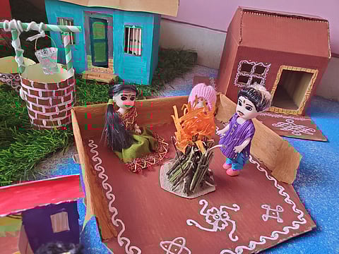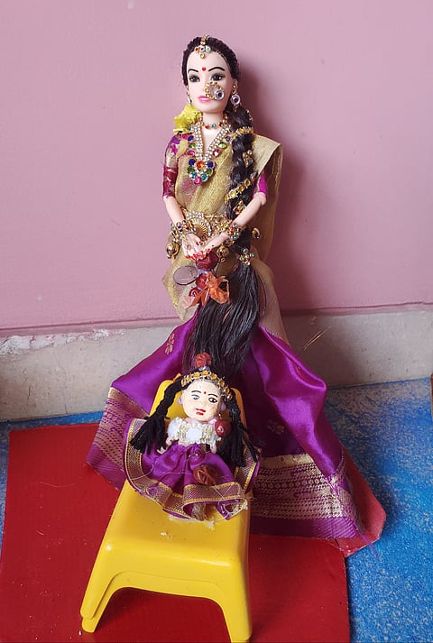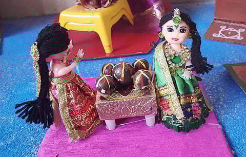 Bommala Koluvu is a custom of arranging an array of dolls in elaborate themes representing various mythological stories,deities, regular village life and traditions such as marriage, public gatherings etc.Usually during Makar Sankranthi, the Telugu people celebrate this tradition with much fanfare