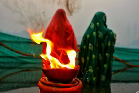 Yet beyond its religious and spiritual depth, Chhath Puja also offers a uniquely syncretic and participatory cultural and political experience, representing a celebration of India’s civilizational renaissance and renewal. No wonder, its contemporary significance unfolds across multiple layers — ecological ethics, women’s agency, migrant identity, vernacular modernity, and political symbolism. The four days of Chhath- Nahay Khay, Kharna, Sandhya Arghya (offering the setting sun) and Usha Arghya (offering to the rising sun) are also a post-anthropocentric celebration of the blurring of spatial and species distinctions. The puja materials used—clay stoves, bamboo baskets, river water, fruits, and thekua (a jaggery-sweetened offering) are often locally sourced and home-made. There is no idol, no temple, only worshippers. Every participant, rich or poor, Dalit or Brahmin, man or woman, performs the same act of offering before the same sun. In this sense, Chhath Puja becomes a living metaphor for contemporary Bihar, a symbolic enactment of a republic of homo aequalis where caste hierarchies and clientelistic exchanges recede, if only for a fleeting but powerful moment, and everyone comes under the maternal protection of Chhathi Maiya.