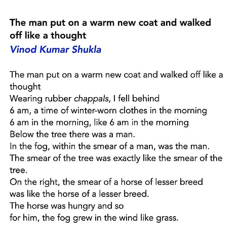 In the last year, when I spent hours going through Shukla’s poems, preparing a selection for translation, even using some of his poems in my own writing, I did not realise when his words started becoming a part of my everyday. At the onset of winter in Delhi, my friend and I would joke about the various naya garam coats lying in the house. Every time we saw a window in the villages we would chant, like schoolboys – deewar mein ek khidhki rehti thi. Perhaps, it might be considered blasphemy or “reductionist”, but to me, even this kind of engagement is a testament to the superfluous presence of literature, and Shukla’s art, in the everyday of people he never met. This is the way it should be. I am not able to conjure up eloquent assessments of Shukla’s mastery of language, and his tremendous impact on the literary imagination of this subcontinent. He got the prestigious Jnanpeeth Award a few months before his passing, and only last year a beautiful little film was made on him, that draws from the rhythms of his own writing – Chaar Phool Hain Aur Duniya Hain (2024). But I want to let Shukla, the poet, have the last word – tentative, and final.