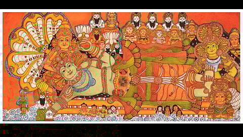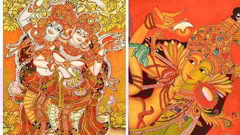 It was a random visit to an 8th century Shiva temple at Todeekalam temple in Thalassery, that left me completely awestruck. It’s a small place in the Kannur district, notorious for numerous political murders, that form the quintessential part of lives here in the northern part of Kerala. Little had I known that this journey would be a life-altering one for me. First look at the walls embellished with Kerala murals seems to have inspired, not only my mind but also my soul. Characteristic warmth, elaborate ornamentation and subtle shading of these paintings captured my imagination and I decided instantly to go every mile to learn this art.