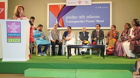 She points out that not all poems written by trans poets are about exile or displacement. Some poems are about the inner conflicts of the trans experience. Some are about the irony of promoting Beti Bachao Beti Padhao while ignoring transphobia. "Trans poets also write about topics that cis poets write about. But no one wants to read that," Bandopadhyay rues. Bandopadhyay herself chose to read out the following lines at the 2022 summit: "I wanted love from you / You gave me huge condom full of my both hands and KY gel".