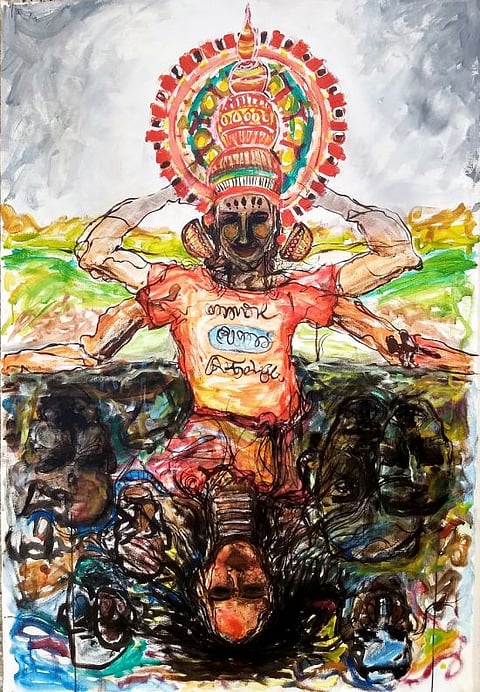 For more than a decade now, Ravindra Kumar has been infusing societal thoughts into his paintings in a bid to trigger in the viewers’ mind an interrogative spirit about various norms and injustices around. “I do not follow a particular style. For me, art is a travel to the deepest corners of my mind and producing it through colours,” says the artist from Jharkhand. “I want to talk on social issues and use art as a medium to do so.”