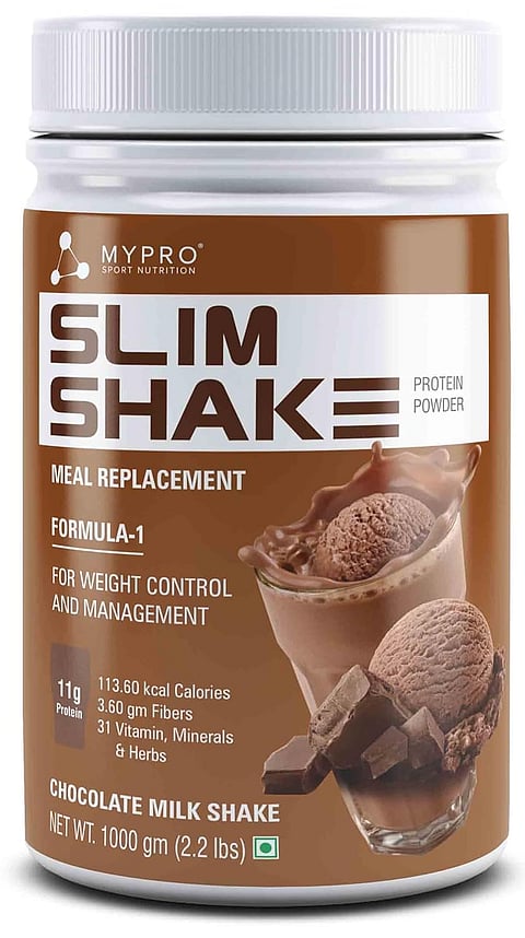 Mypro Sport Nutrition Slim Shake Chocolate is perfect for meal replacement for effective weight control. With 11g of protein, 31 vitamins, minerals, and herbs, it curbs hunger for up to 4 hours. The 3.60g of fibre promotes better digestion, and it's sugar-free. Boost metabolism, satisfy cravings, and stay full with this FSSAI licensed, GMP certified, and WHO and ISO approved slimming solution. Slim Shake - your delicious partner for successful weight management.
