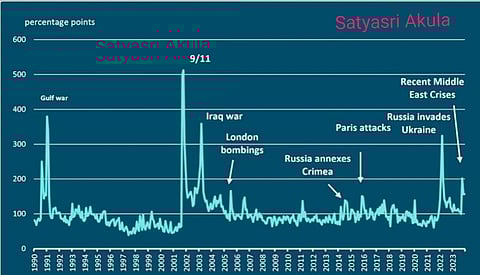 The index effectively reflects major historical events, such as the First Gulf War, the September 11 attacks, and Russia’s invasion of Ukraine, highlighting its sensitivity to significant geopolitical developments.