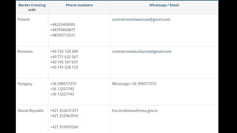 The following 24x7 Control Centres have been set up to assist in the evacuation of Indian nationals through the border crossing points with Poland, Romania, Hungary and Slovak Republic: