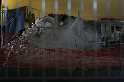 Smoke rises from a crater after the Lebanese army detonate a walkie-talkie that was found at the parking of the American University Hospital, in Beirut, Lebanon.