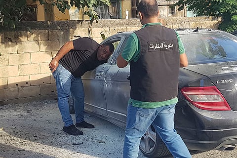 Lebanese security officers check a partly damaged car after what is believed to be the result of a walkie-talkie exploding inside it, in the southern port city of Sidon, Lebanon.